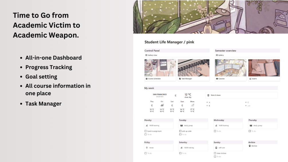 This all-in-one Notion template offers a way to organize, gather and store all the information needed for your academic year and maximum success.